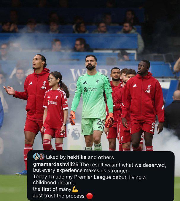 雷速体育10月5日讯 英超联赛第7轮的焦点战,利物浦在补时阶段遭到绝杀,最终1-2不敌切尔西。这是利物浦各项赛事遭遇的三连败。本场比赛首发的利物浦门将马马尔达什维利在赛后发社媒鼓励球队。值得一提的是,本场比赛是马马尔达什维利代表利物浦的英超首秀。