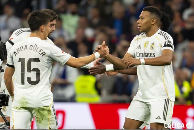 第31分钟,皇马打出精彩配合,居莱尔下底传中展现精妙脚法,皮球正好越过后卫,姆巴佩杂耍一般,将球打进。